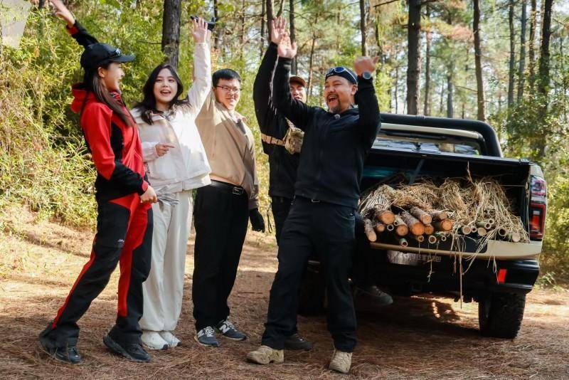 五大荒野趣味挑戰(zhàn),層層遞進、環(huán)環(huán)相扣。在搭建庇護所環(huán)節(jié),嘉賓們利用長城炮運輸木材、傘繩等物資,完成從選址到搭建的全流程,有人展現(xiàn)出“荒野建筑師”的天賦,有人在手忙腳亂中貢獻笑點,考驗著團隊的協(xié)作與空間規(guī)劃能力;狩獵挑戰(zhàn)中,嘉賓們利用層壓工藝制作簡易弓箭,在指定距離內(nèi)進行模擬射擊,成為活動中的經(jīng)典;橫渡挑戰(zhàn)環(huán)節(jié)聚焦高空繩索穿越技能,嘉賓們在專業(yè)指導(dǎo)下克服恐懼、默契配合,展現(xiàn)了從膽怯到勇敢的成長蛻變;凈水與取火挑戰(zhàn)則回歸生存本質(zhì),嘉賓們利用木炭、細沙、枯草等天然材料,搭建簡易凈水裝置、掌握弓鉆取火技巧,在實踐中鍛煉了生存技能。這不僅是一次沉浸式的荒野挑戰(zhàn),更是一場生動的野外安全實操課。