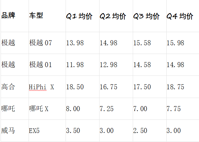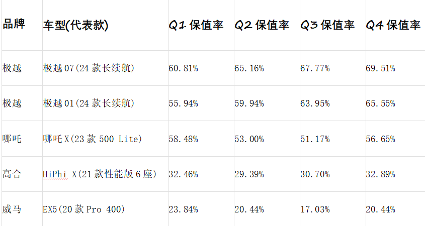記者整合懂車帝、汽車之家及部分二手車商數(shù)據(jù)發(fā)現(xiàn),2025年Q1至Q4的高合、威馬、哪吒、極越等新造車市場交易數(shù)據(jù)顯示,部分車型的保值率都出現(xiàn)了不同程度的回升;二手車均價也不同程度的上漲。