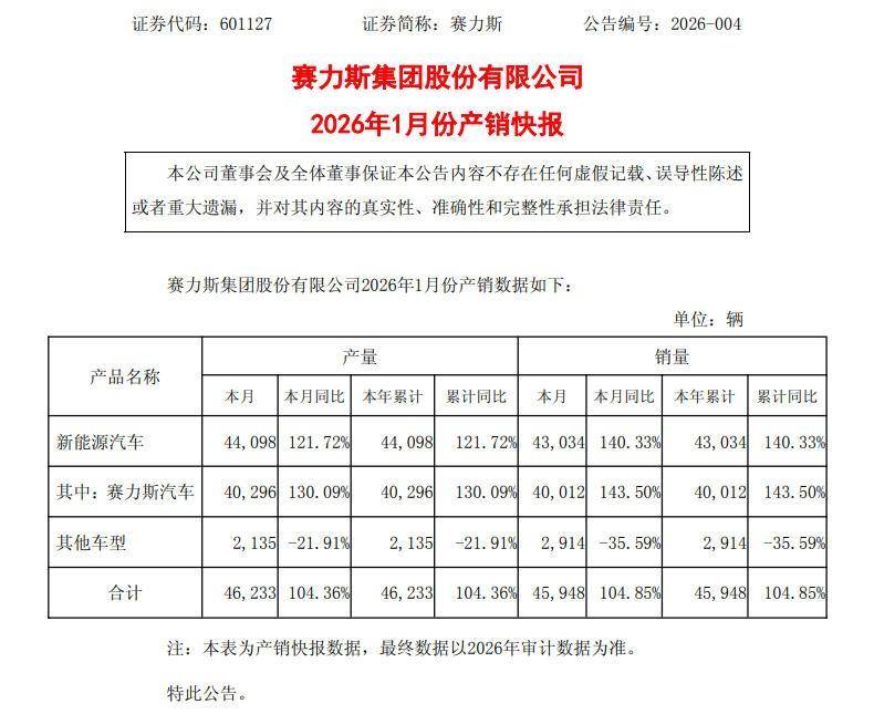 賽力斯1月銷量近4.6萬輛,同比暴增104.85%,其中問界品牌銷量近4萬輛,同比暴增143.5%。賽力斯正走在“康莊大道”上,而隨著新品問界M6的加入,賽力斯2026年繼續(xù)增長,將是更肯定的事情了。