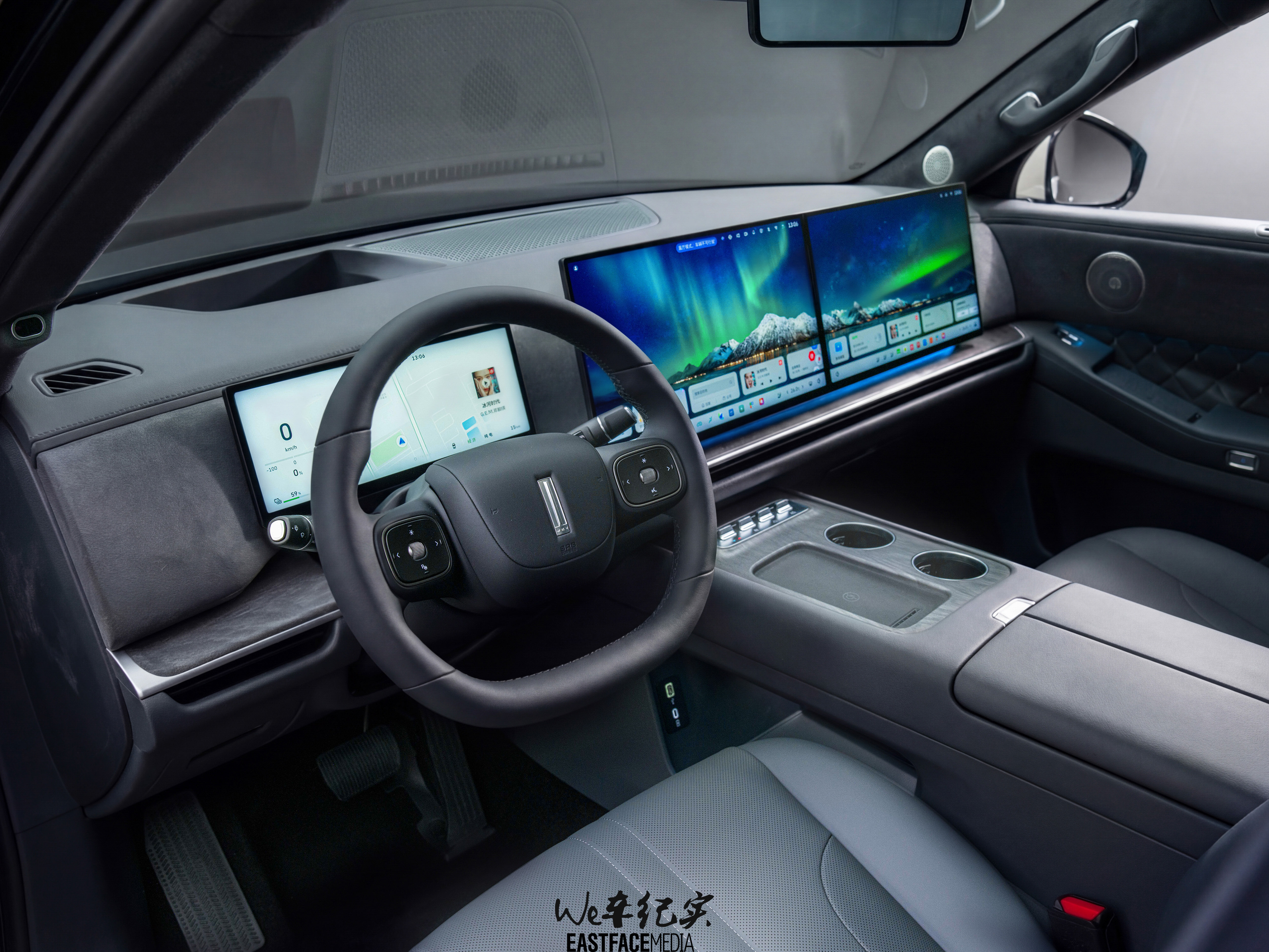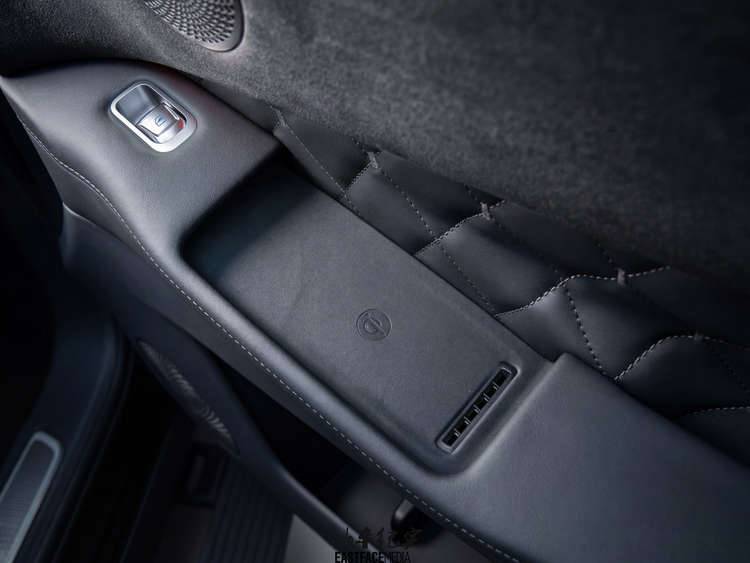 拉開車門,你會(huì)發(fā)現(xiàn)它有時(shí)下流行的大屏、智能車機(jī)、零重力,也有傳統(tǒng)豪華的軟包、菱形格縫線,還有車門位置無線充這樣的小巧思,主打一個(gè)應(yīng)有盡有